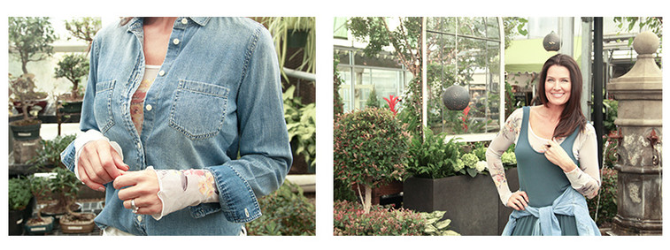 and protection… 2-3 hours into wearing them- they were lower than my neckline which left me exposed and embarrassed with constant tugging and tucking. I NEVER go a day without Halftee. Even if I am wearing a high neck t-shirt… Remember how my girls like to wander the cabin? If I wear a Halftee, it acts as a child proof seat belt. No matter how often I bend or how many baby hands get shoved down my shirt, my Halftee keeps my sisters seated, it stays up in place to provide coverage when needed and I never have to adjust or pull. I don’t spend 75% of my day tugging or checking my cleavage. Not to mention the different sleeve lengths slim my arms making it impossible to take flight when darting after cheetah children. I also love the ability to add flare to my outfit and make myself feel pretty, protected and secure with confidence… Halftee makes my wardrobe LIFE PROOF.